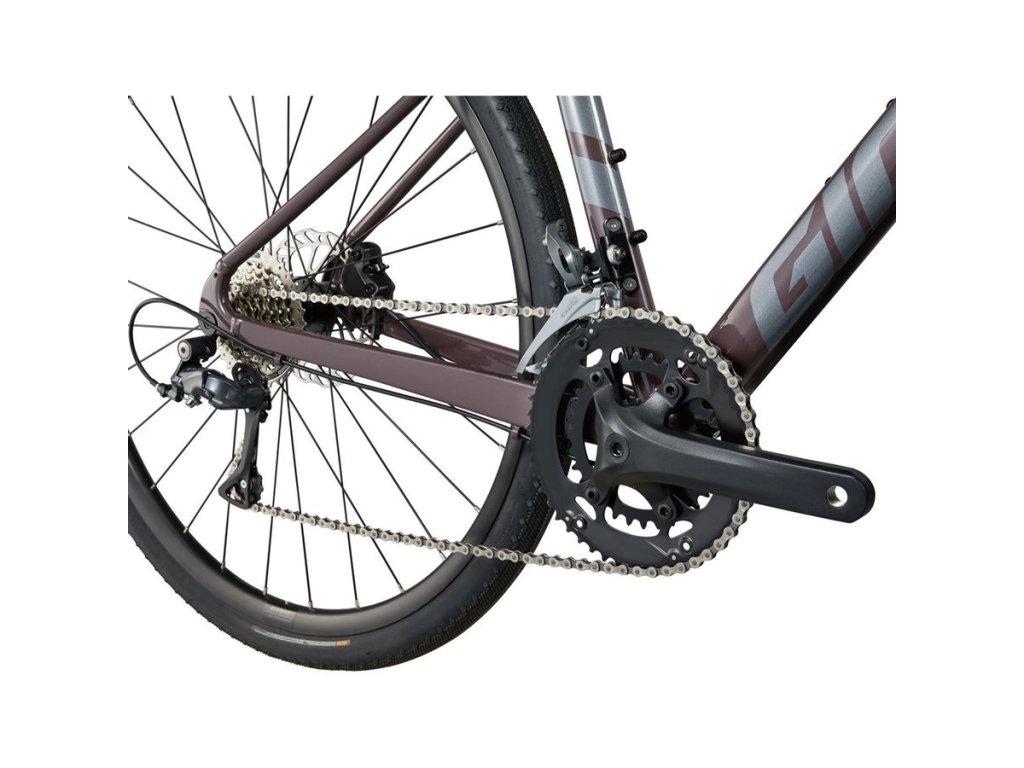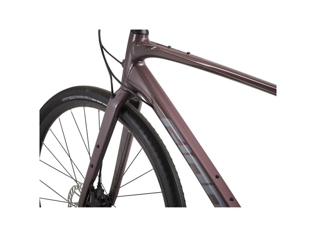 PŘEDSTAVTE SI RYCHLÉ A DOBŘE OVLADATELNÉ SILNIČNÍ KOLO, ALE UNIVERZÁLNĚJŠÍ. DÍKY ROVNÝM ŘÍDÍTKŮM, POHODLÍ A ŠIROKÝM BEZDUŠOVÝM PLÁŠŤŮM OSVOBOZUJE FASTROAD AR JEZDCE PŘI JÍZDĚ NA ZPEVNĚNÝCH CESTÁCH, HRBOLATÝCH CYKLOSTEZKÁCH I NA VŠECH POVRŠÍCH MEZI. HLAVNÍ PŘEDNOSTI Lehký a efektivní Kvalitní hliníkový rám ALUXX a karbonová vidlice umožňují efektivní přenos síly šlapání a přináší pohodlnou a rychlou jízdu na silnicích a stezkách různé kvality. Pohodlná a stabilní jízda Geometrie rámu přizpůsobená rovným řídítkům umožňuje vzpřímenější pozici těla pro sebejisté ovládání kola. Výkonné kotoučové brzdy poskytují lepší kontrolu nad kolem za všech podmínek. Kombinace karbonové sedlovky D-Fuse a sedla ErgoMax pak pomáhá "žehlit" nerovné silnice. Univerzální schopnosti na všech površích Prostor pro široké bezdušové pneumatiky (až 42 mm) přináší jezdci volnost i univerzálnost pro jízdu po hladkých silnicích, hrbolatých cyklostezkách nebo štěrku. V nabídce jsou různé modely vybavené jedním nebo dvěma převodníky, aby vyhovovaly individuálnímu jízdnímu stylu jezdce i typu terénu. RÁM VELIKOST XL BARVA Charcoal Plum RÁM ALUXX-Grade Aluminum VIDLICE Advanced-Grade Composite, composite OverDrive steerer KOMPONENTY ŘÍDÍTKA Giant Sport, mini-rise, 31.8 XS:64cm, S:64cm, M:68cm, M/, L:68cm, XL:68cm GRIPY Giant ErgoContact PŘEDSTAVEC Giant Sports XS:80mm, S:90mm, M:100mm, M/L:100mm, L:110mm, XL:110mm SEDLOVKA Giant D-Fuse, alloy, 350mm SEDLO Giant ErgoContact PEDÁLY platform pedal OSAZENÍ ŘAZENÍ Shimano Claris, 2x8 PŘESMYKAČ Shimano Claris PŘEHAZOVAČKA Shimano Claris BRZDY Tektro HD-R280, Giant MPH rotors [F]160mm, [R]160mm BRZDOVÉ PÁKY Tektro HD-R280 KAZETA Shimano CS-HG41, 11x34 ŘETĚZ KMC Z8.3 KLIKY forged alloy, 32/48 XS:170mm, S:170mm, M:170mm, M/L:172.5mm, L:172.5mm, XL: 172.5mm STŘED cartridge KOLA RÁFKY Giant S-X2 Disc wheelset NÁBOJE Giant alloy, 12mm thru-axle DRÁTY Sapim PLÁŠTĚ Giant Gavia Fondo AR, tubeless, 700x40c DOPLŇKY tubeless prepared, 42mm max tire size