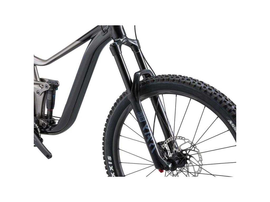 AŤ UŽ BUDETE NA NOVÉM REIGNU JEZDIT S OBĚMA KOLY 29“ NEBO V KONFIGURACI MULLET, TENTO MODERNÍ ENDURO STROJ JE NAVRŽEN TAK, ABY POSOUVAL VAŠE LIMITY I V HODNĚ TĚŽKÉM TERÉNU. INOVOVANÉ ZADNÍ ODPRUŽENÍ MAESTRO S VYŠŠÍM ZDVIHEM POHLTÍ COKOLIV, CO VÁM TRAIL POSTAVÍ DO CESTY, A NOVÝ TŘÍPOLOHOVÝ FLIP CHIP VÁM UMOŽNÍ NASTAVIT GEOMETRII RÁMU TAK, ABY VÁM MAXIMÁLNĚ VYHOVOVALA. HLAVNÍ PŘEDNOSTI Závodně vyladěné odpružení Zadní odpružení Maestro jsme upravili tak, aby poskytovalo vyšší zdvih (160 mm oproti 146 mm u předchozí generace) – ladění a testování probíhalo v extrémních podmínkách závodů EWS - Světové enduro série. Tlumič s uložením typu trunnion má delší zdvih (62,5 mm ve srovnání s 60 mm u předchozí generace). Karbonové horní vahadlo Advanced Forged Composite dává systému odpružení potřebnou tuhost a zároveň snižuje jeho hmotnost. Nastavitelná enduro geometrie Díky novému flip chipu se třemi polohami (low – mid – high) si můžete vyladit geometrii kola s ohledem na terén, styl jízdy a také velikost zadního kola. Můžete si vybrat hlavový úhel 63,5, 63,9 nebo 64,2 a k tomu odpovídající úhel sedlové trubky 78,3, 78,7 nebo 79, změna se adekvátně projeví také na výšce středu šlapání – BB drop je 35, 30 nebo 25 mm. Zadní kolo 29“ nebo 27,5“ Nový Reign je navržen tak, abyste si mohli vybrat, jestli ponecháte zadní kolo 29“ (kterým jsou modely Reign sériově vybaveny), nebo jestli ho vyměníte za kolo 27,5“. Větší zadní kolo zlepšuje stabilitu a překonávání nerovností, zatímco konfigurace mullet (tj. smíšená kola) přináší vyšší agilitu a hbitost kola. Případně se dá zadní kolo měnit podle potřeby – je to rychlá a snadná změna, která vám umožní dosáhnout požadovaných vlastností kola podle toho, kde a jak budete na kole jezdit. RÁM VELIKOST M BARVA Black/Metal RÁM ALUXX SL-Grade Aluminum front and rear triangles, 160mm Maestro suspension, flip chip, 12x148mm thru-axle, 27.5 or 29-inch rear wheel compatible, flip chip - Maestro 3, integrated downtube storage VIDLICE RockShox Yari RC, 170mm, 15x110 Maxle Stealth, 44mm offset, custom tuned for Giant TLUMIČ RockShox Deluxe Select+, 205/62.5, custom tuned for Giant KOMPONENTY ŘÍDÍTKA Giant Contact SL TR35, 800x35mm, 20mm rise GRIPY Giant Tactal Pro Single S:120mm, M:120mm, L:130mm, XL:130mm PŘEDSTAVEC Giant Contact SL 35 S:40mm, M:40mm, L:40mm, XL:40mm SEDLOVKA Giant Contact Switch dropper, remote, 30,9 mm SEDLO Giant Romero OSAZENÍ ŘAZENÍ Shimano Deore SL-M6100, 1x12 PŘEHAZOVAČKA Shimano SLX RD-M7100 BRZDY Shimano Deore BR-MT520, hydraulic, Shimano RT-66 rotors [F]220mm, [R]200mm BRZDOVÉ PÁKY Shimano Deore BL-MT501 KAZETA Shimano Deore M6100, 10x51 ŘETĚZ Shimano KLIKY Praxis Cadet HD M24, 32t, 55mm chainline S:165mm, M:170mm, L:170mm, XL:170mm STŘED Praxis, press fit KOLA RÁFKY Giant AM 29, alloy NÁBOJE alloy, sealed DRÁTY Sapim PLÁŠTĚ [F] Maxxis Assegai 29x2.5 WT, 3C MaxxTerra, EXO+, TR [R] Maxxis Minion DHR II 29x2.4 WT, 3C MaxxTerra, DD, TR tubeless DOPLŇKY tubeless prepared, 2.5" max tire size, 36t max chainring size, MRP AMG CS chain guide Reign Supreme: The All-New Reign | Giant Bicycles