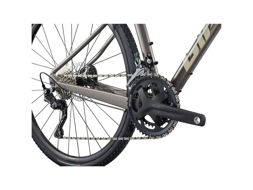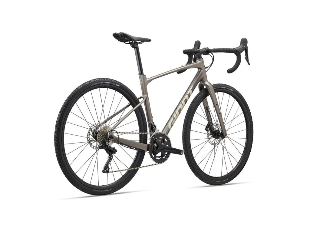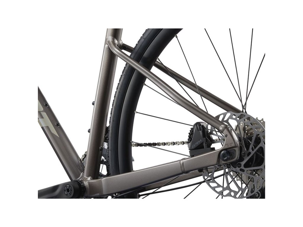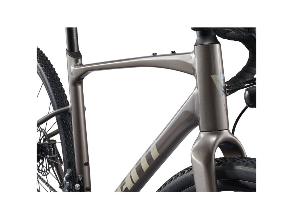 Všestranný a pohodlný gravel bike Revolt bude perfektním společníkem při objevování silnic a cest, o kterých jste vždy přemýšleli, ale nikdy po nich nejeli. Jeho pohodlný hliníkový rám s karbonovou vidlicí poskytuje možnost změny rozvoru kol a také možnost použití teleskopické sedlovky. Hlavní přednosti Hliníkový rám s moderní geometrií Lehký hliníkový rám ALUXX spolu s celokarbonovou vidlicí přináší dokonalou rovnováhu tuhosti pro co nejvyšší efektivitu šlapání a poddajnosti pro vysoký komfort. Geometrie kombinuje vytrvalostní jízdní pozici s kratší zadní stavbou pro precizní ovládání, hbitost a perfektní kontrolu nad kolem. Delší reach, kratší představec a nižší střed zlepšují stabilitu v hrubším terénu. Vysoký komfort Rám má níže umístěné sedlové vzpěry menšího průměru pro ještě lepší pohlcování nárazů a vibrací. K vyššímu komfortu pomáhá také speciálně tvarovaná sedlovka D-Fuse a řídítka Contact XR D-Fuse – obojí společně funguje jako systém a pod zátěží mírně pruží, ovšem bez snížení tuhosti při zatáčení, stoupání nebo jízdě ze sedla. Přizpůsobení kola podle terénu Zadní patky umožňují díky systému flip chip měnit rozvor kol. Kratší rozvor přináší vyšší „hbitost“ kola, nastavení na delší rozvor zlepšuje stabilitu ve vyšších rychlostech a současně zvětšuje prostor pro zadní plášť (až na 53 mm). Rám umožňuje také volbu typu sedlovky – dá použít buď „pružící“ sedlovka Giant D-Fuse nebo standardní kulatá sedlovka 30,9 mm, tedy i teleskopická. SPECIFIKACE RÁM VELIKOST XS BARVA Pale Olive RÁM ALUXX-grade aluminum, 12x142mm thru-axle, disc, flip chip dropout VIDLICE Advanced-grade composite, full-composite OverDrive steerer, 12mm thru-axle, disc KOMPONENTY ŘÍDÍTKA Giant Contact XR D-Fuse, 31.8mm XS:42cm, S:42cm, M:44cm, M/L:44cm, L:46cm, XL:46cm GRIPY cork tape with gel PŘEDSTAVEC Giant Contact, 8-degree XS:50mm, S:60mm, M:70mm, M/L:80mm, L:80mm, XL:90mm SEDLOVKA Giant D-Fuse, alloy, 14mm offset SEDLO Giant Approach OSAZENÍ ŘAZENÍ Shimano GRX RX-400, 2x10 PŘESMYKAČ Shimano Tiagra PŘEHAZOVAČKA Shimano GRX RX-400 BRZDY Shimano GRX RX-400 hydraulic, Giant MPH rotors [F]160mm, [R]160mm BRZDOVÉ PÁKY Shimano GRX RX-400 hydraulic KAZETA Shimano HG500, 11x34 ŘETĚZ KMC X10 with Missing Link KLIKY FSA Omega Adventure, 32/48 XS:170mm, S:170mm, M:172.5mm, M/L:172.5mm, L:175mm, XL:175mm STŘED FSA Mega EXO KOLA RÁFKY Giant S-X2 Disc wheelset, alloy NÁBOJE Giant alloy, 12mm thru-axle DRÁTY stainless PLÁŠTĚ Giant CrossCut AT 2, 700x38c, tubeless DOPLŇKY tubeless prepared, 53mm max tire size in "long" flip chip position, 45mm max tire size in "short" flip chip position