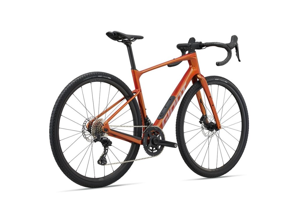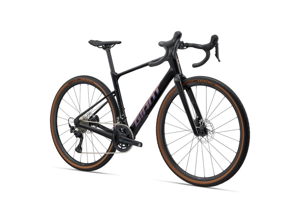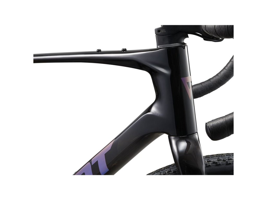 GRAVEL CRUSHER Pro ty, kteří mají rádi rychlou a ničím neomezenou jízdu na šotolině, je určen tento lehký karbonový gravel bike. Nový Revolt Advanced vám umožní zvolit si svůj cíl – připněte si na kolo startovní číslo a vyrazte za vítězstvím, nebo si naplánujte víkendové dobrodružství a zjistěte, kam až můžete dojet. Díky špičkovému karbonovému rámu, nastavitelnému rozvoru a vnitřnímu úložnému prostoru pro přepravu nezbytných věcí je Revolt Advanced připraven na všechno. HLAVNÍ PŘEDNOSTI RYCHLÝ A VŠESTRANNÝ Karbonový rám a vidlice Advanced Composite společně přinášejí nízkou hmotnost, vysokou efektivitu a perfektní ovladatelnost. Dvoupolohový systém flip chip umístěný v zadních patkách umožňuje nastavit rozvor: krátký pro rychlejší ovládání nebo dlouhý pro větší prostor pro pláště (až 53 mm) a větší stabilitu. Rám také umožňuje volbu typu sedlovky, takže se dá použít buď sedlovka Giant D-Fuse pro vyšší pohodlí nebo standardní kulatá (tedy i teleskopická) sedlovka 30,9 mm. VYSOKÝ KOMFORT Rám má níže umístěné sedlové vzpěry menšího průměru pro ještě lepší pohlcování nárazů a vibrací. K vyššímu komfortu a tím i snížení únavy na hrubých cestách nebo na dlouhých vzdálenostech pomáhá také karbonová sedlovka D-Fuse (kromě modelu Revolt Advanced 1, který má sedlovku teleskopickou) a řídítka Contact XR D-Fuse – obojí společně funguje jako systém a pod zátěží mírně pruží, ovšem bez snížení tuhosti při zatáčení, stoupání nebo jízdě ze sedla. CHYTRÁ INTEGRACE Vnitřně vedené kabely nabízejí čistý a estetický vzhled kokpitu a lepší aerodynamický výkon. Snadno přístupný úložný prostor ve spodní rámové trubce vám umožní bezpečně přepravovat nářadí, výživu a další nezbytnosti. Další integrované úchyty na horní rámové trubce, vidlici a zadní stavbě usnadňují případnou instalaci brašen či blatníků. Zcela nová a speciálně tvarovaná ochrana rámu (pod řetězem a na spodní trubce) pomáhá chránit rám před nárazy a také tlumí hluk. RÁM VELIKOST XL BARVA Solar Flare RÁM Advanced-grade composite, 12x142mm thru-axle, disc, flip chip dropout, down tube storage VIDLICE Advanced-grade composite, full-composite OverDrive steerer, 12mm thru-axle, disc KOMPONENTY ŘÍDÍTKA Giant Contact XR D-Fuse, 31.8mm XS:42cm, S:42cm, M:44cm, M/L:44cm, L:46cm, XL:46cm GRIPY Stratus Lite 3.0 PŘEDSTAVEC Giant Contact AeroLight, -10 degree XS:50mm, S:60mm, M:70mm, M/L:80mm, L:80mm, XL:90mm SEDLOVKA Giant D-Fuse, composite, 14mm offset SEDLO Giant Grit OSAZENÍ ŘAZENÍ Shimano GRX RX-610, 2x12 PŘESMYKAČ Shimano GRX RX-820 PŘEHAZOVAČKA Shimano GRX RX-820 BRZDY Shimano GRX RX-410 hydraulic, Giant MPH rotors [F]160mm, [R]160mm BRZDOVÉ PÁKY Shimano GRX RX-610 hydraulic KAZETA Shimano CS-HG710, 12-speed, 11x36 ŘETĚZ KMC X12L-1 KLIKY FSA Omega Modular AGX+, 32/48 XS:170mm, S:170mm, M:172.5mm, M/L:172.5mm, L:175mm, XL:175mm STŘED FSA BB-AL86, press fit KOLA RÁFKY Giant P-X2 Disc wheelset, alloy NÁBOJE Giant alloy, 12mm thru-axle DRÁTY Sapim PLÁŠTĚ Giant Crosscut Grip TR, 700x40c, tubeless DOPLŇKY tubeless prepared, 53mm max tire size in "long" flip chip position, 45mm max tire size in "short" flip chip position, in-frame storage bag
