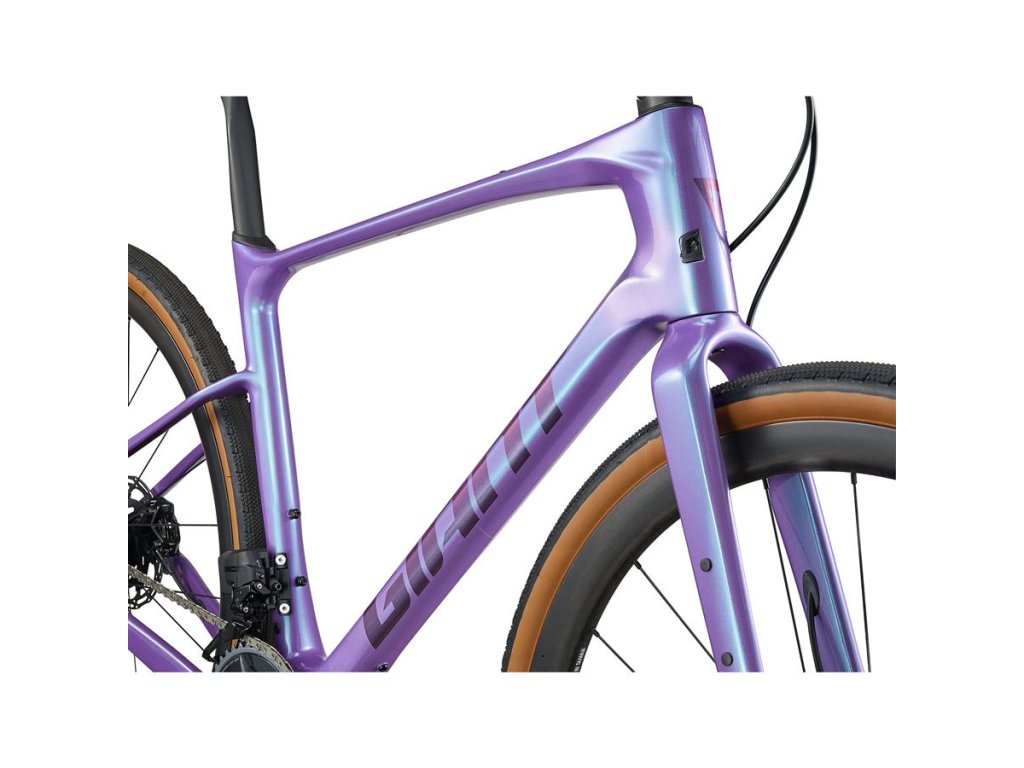 NEJNOVĚJŠÍ GENERACE MODELU REVOLT ADVANCED PRO PŘEDSTAVENÁ V MODELOVÉ ŘADĚ 2022 JE MODERNÍ GRAVEL BIKE NAVRŽENÝ PRO CELODENNÍ DOBRODRUŽSTVÍ PO HRUBŠÍCH CESTÁCH NEBO I NA GRAVEL ZÁVODY. JE PŘEKVAPIVĚ LEHKÝ, VYSOCE POHODLNÝ A MIMOŘÁDNĚ EFEKTIVNÍ. A NAVÍC SI DÍKY FLIP CHIP ZADNÍM PATKÁM MŮŽETE KOLO PŘIZPŮSOBIT TERÉNNÍM PODMÍNKÁM. HLAVNÍ PŘEDNOSTI Nízká hmotnost a moderní geometrie Superlehký, vysoce tuhý a zároveň velmi pohodlný karbonový rám Advanced Composite s vidlicí Advanced SL Composite je ve srovnání s předchozí generací o 200 gramů lehčí. Úprava geometrie pro ještě lepší jízdní vlastnosti spočívá v níže položeném středu, také se prodloužil reach (tj. vodorovná vzdálenost od středu kola ke středu horní části hlavové trubky) a úhel hlavové trubky je strmější. Vysoký komfort Rám má níže umístěné sedlové vzpěry menšího průměru pro ještě lepší pohlcování nárazů a vibrací. K vyššímu komfortu pomáhá také karbonová sedlovka D-Fuse SLR a karbonová řídítka Contact SLR XR D-Fuse – obojí společně funguje jako systém a pod zátěží mírně pruží, ovšem bez snížení tuhosti při zatáčení, stoupání nebo jízdě ze sedla. Přizpůsobení kola podle terénu Flip chip zadní patky umožňují měnit rozvor kol. Kratší rozvor přináší vyšší „hbitost“ kola, delší rozvor zlepšuje stabilitu ve vyšších rychlostech a také zvětšuje prostor pro zadní plášť (až na 53 mm). Rám také umožňuje (díky speciálnímu adaptéru) volbu typu sedlovky, takže se dá použít buď sedlovka Giant D-Fuse pro vyšší pohodlí nebo standardní kulatá (tedy i teleskopická) sedlovka 30,9 mm. RÁM VELIKOST ML BARVA Digital Blurple/Iris RÁM Advanced-grade composite, 12x142mm thru-axle, disc, flip chip dropout VIDLICE Advanced SL-grade composite, full-composite OverDrive steerer, 12mm thru-axle, disc KOMPONENTY ŘÍDÍTKA Giant Contact SLR XR D-Fuse, 31.8mm XS:42cm, S:42cm, M:44cm, M/L:44cm, L:46cm, XL:46cm GRIPY Stratus Lite 3.0 PŘEDSTAVEC Giant Contact, 8-degree XS:50mm, S:60mm, M:70mm, M/L:80mm, L:80mm, XL:90mm SEDLOVKA Giant D-Fuse SL, composite, -5/+15mm offset SEDLO Giant Approach SL OSAZENÍ ŘAZENÍ SRAM Force eTap AXS, 2x12 PŘESMYKAČ SRAM Force eTap AXS PŘEHAZOVAČKA SRAM Force eTap AXS BRZDY SRAM Force eTap AXS hydraulic, SRAM CenterLine rotors [F]160mm, [R]160mm BRZDOVÉ PÁKY SRAM Force eTap AXS hydraulic KAZETA SRAM Force, 12-speed, 10x36 ŘETĚZ SRAM Force D1 KLIKY SRAM Force D1 DUB, 30/43 XS:170mm, S:170mm, M:172.5mm, M/L:172.5mm, L:175mm, XL:175mm STŘED SRAM DUB, press fit KOLA RÁFKY Giant CXR 1 Carbon Disc WheelSystem, [F] 35mm, [R] 35mm NÁBOJE [F] Giant AR alloy, CenterLock, 12mm thru-axle, [R] Giant AR alloy, DT350 36t ratchet driver, CenterLock, 12mm thru-axle DRÁTY Sapim CX-Ray PLÁŠTĚ CADEX AR, 700x40c, tubeless DOPLŇKY tubeless prepared, 53mm max tire size in "long" flip chip position, 45mm max tire size in "short" flip chip position