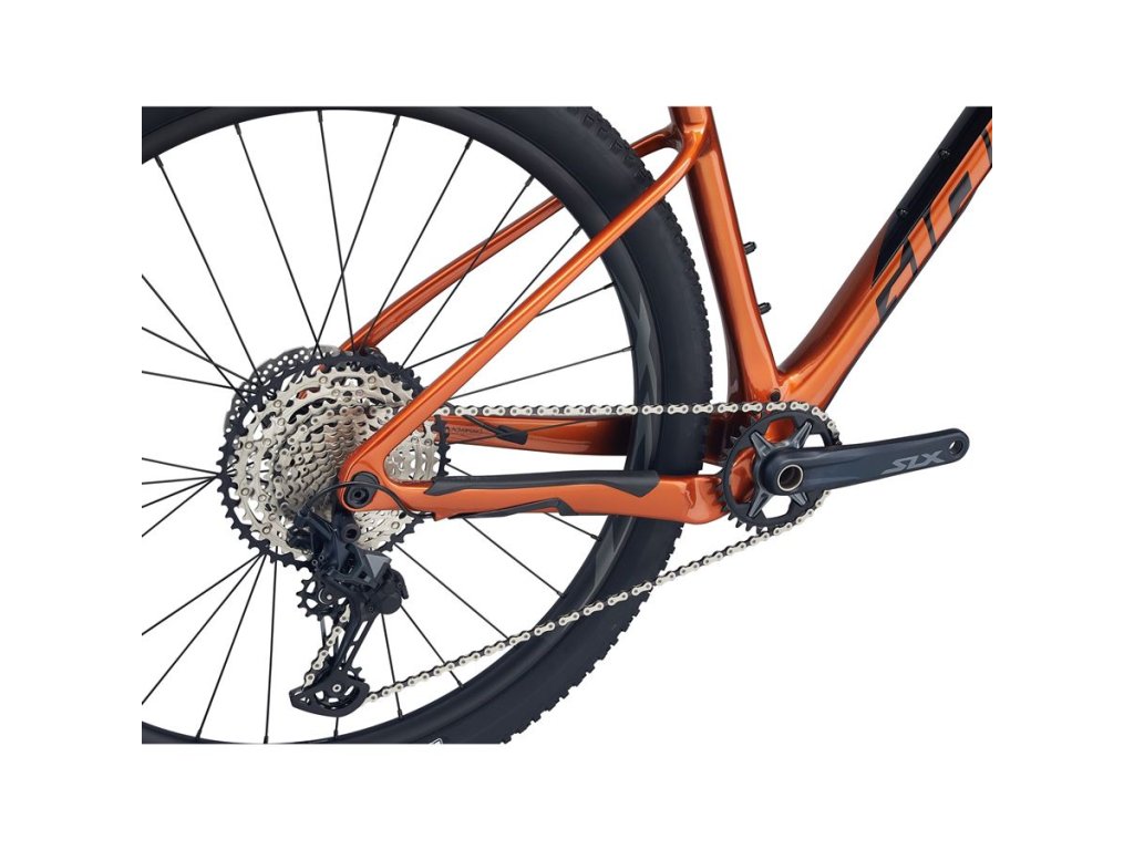 CENOVĚ DOSTUPNĚJŠÍ VARIANTA ZÁVODNÍHO XC SPECIÁLU XTC ADVANCED SL 29, KTERÁ PŘI VÝRAZNĚ NIŽŠÍ CENĚ NABÍDNE VELMI PODOBNÉ JÍZDNÍ VLASTNOSTI JAKO TOP MODEL. XTC ADVANCED 29 JE SKVĚLÁ VOLBA JAK PRO XC ZÁVODY A MARATONY, TAK I PRO VÝKONNOSTNÍ JEŽDĚNÍ PO VAŠICH OBLÍBENÝCH XC TRASÁCH, KDY NA ŘÍDÍTKÁCH NEMÁTE PŘIPNUTÉ STARTOVNÍ ČÍSLO. HLAVNÍ PŘEDNOSTI Karbonový rám Advanced Composite Základem kola je překvapivě lehký karbonový rám Advanced Composite – ve velikosti M váží pouhých 995 gramů. Karbonové rámy vyrábíme v našich vlastních továrnách ze surových materiálů nejvyšší kvality a s použitím pokročilých výrobních metod a procesů. Díky tomu mají tyto rámy vysokou tuhost při nízké hmotnosti a poskytují vynikající jízdní vlastnosti pro výkonnostní a závodní cyklistiku. Vysoce efektivní a dokonale vyladěný Rám je navržen a zkonstruován tak, aby poskytl vysokou efektivitou šlapání a precizní ovládání kola za všech okolností. Velmi specifická je samotná konstrukce rámu, tedy skladba jednotlivých karbonových částí při ruční výrobě – liší se podle velikosti rámu. Optimalizována je především vertikální „poddajnost“, aby rám byl dostatečně tuhý a pohodlný zároveň. Tím je docíleno těch nejlepších jízdních vlastností pro každou velikost rámu. Závodní XC geometrie Ryze závodní geometrie tohoto XC speciálu dokonale využívá všech předností 29“ kol. Pár důležitých čísel – hlavový úhel činí 69,5° (u velikostí L a XL je to 70,0°), vidlice je tedy více položená, což pomáhá k lepší ovladatelnosti kola zejména v rychlých sjezdech a technických pasážích. Sedlový úhel 73,5° zase oceníte v prudkých výjezdech, kdy kolo díky vaší ideální jízdní pozici ochotně pojede nahoru a bude velmi dobře držet stopu. Velikost S Barva Black / Amber Glow Rám Advanced-Grade Composite, 12x148mm thru-axle Vidlice RockShox Recon Silver RL, 100mm, Boost 15X110 Maxle Stealth, remote lockout Řídítka Giant Contact SL XC Flat, 780x31.8mm Gripy Giant XC Pro S:32mm, M:32mm, L:34mm, XL:34mm Představec Giant Contact S:60mm, M:70mm, L:80mm, XL:90mm Sedlovka Giant Connect, 30.9x400mm Sedlo Fi'zi:k Antares R7 with S-Alloy rails Řazení Shimano SLX, 1x12 Přehazovačka Shimano SLX Brzdy Shimano BR-MT500, hydraulic, Shimano RT-56 rotors [F]180mm, [R]160mm Brzdové páky Shimano MT-501 Kazeta Shimano SLX, 10x51 Řetěz KMC X-12 Kliky Shimano SLX, 32t S:170mm, M:175mm, L:175mm, XL:175mm Středové složení Shimano, press fit Ráfky Giant XCT 29” alloy, 25mm inner width Náboje alloy, sealed bearing Dráty Sapim Pláště Maxxis Recon Race 29x2.25, foldable, TLR, EXO, tubeless Doplňky tubeless prepared, 2.25" max tire size, 38t max chainring size